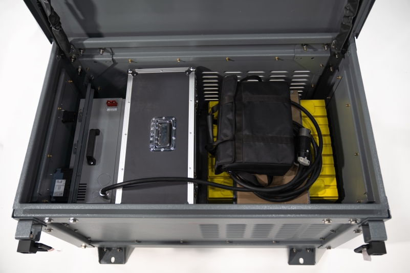 - Cabling – DC cables: 50 ft. extra-flexible, reel mounted; AC cables: cleat-mounted to load bank and charger